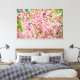 Plum Flor. Blossomas de ameixas floridas também conhecidas como amêndoas floridas. Flores festivas rosa contra fundo azul e verde. tema primavera. Esta é uma ameixeira, esta é uma amêndoa, esta é uma cerejeira. Esta árvore é tudo. É originário da China e cientificamente chamado Louiseania triloba, Amygdalus triloba e Prunus triloba. É considerada uma cereja de shrubby, algumas pessoas chamam-lhe sakura. Uma planta muito elegante e decorativa. Wallart, impressão, poster, canvas para decorar seu quarto ou escritório