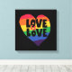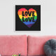 Esta trabalho de arte apresenta a frase "O amor é o amor" projetada dentro de um coração colorido arco-íris.