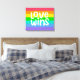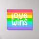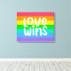 Este trabalho de arte apresenta um arco-íris colorido com as palavras Love Wins.