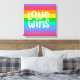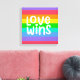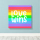 Este trabalho de arte apresenta um arco-íris colorido com as palavras Love Wins.