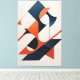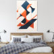 Geometric forms dance in balance between vibrant orange and deep blue. A bold composition that evokes rhythm, motion, and architectural precision.