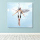 Renderização digital 3D de um anjo branco giro sobre fundo azul