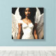A canvas apresenta o ser celestial trabalho de arte de uma bela mulher melanizada como um anjo celestial com asas brancas grandes vestindo um vestido branco. Uma imagem estética angelcore única da feminilidade divina com um bonito seroafilococo negro.