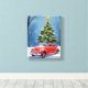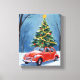 Antique Red Car Christmas Tree Holiday Canvas Print