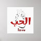 A modern and minimalist take on Arabic typography. The bold red "Al-Hub" (Love) creates a powerful visual statement that bridges the gap between traditional language and contemporary street-style design.