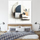 A modern architectural composition featuring circles, rectangles, and intersecting lines arranged in a balanced geometric layout. Layered shapes and a neutral color palette create a refined, contemporary design with subtle depth. This piece belongs to the Architecture Collection and works beautifully as wall art or decorative pillows.