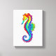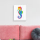 Articulação artificial, brilhante, arco-íris, cavalo de mar poligonal sobre fundo branco. Tatuagem brilhante.