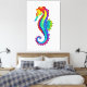 Articulação artificial, brilhante, arco-íris, cavalo de mar poligonal sobre fundo branco. Tatuagem brilhante.