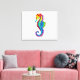 Articulação artificial, brilhante, arco-íris, cavalo de mar poligonal sobre fundo branco. Tatuagem brilhante.