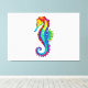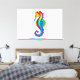 Articulação artificial, brilhante, arco-íris, cavalo de mar poligonal sobre fundo branco. Tatuagem brilhante.