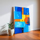 Esta ousada arte de abstrato com tons azuis ricos, sotaques laranja vibrantes e realces amarelos quentes, criando uma declaração visual impressionante para qualquer sala. Projetada para despertar energia e criatividade, a composição dinâmica combina estilo contemporâneo com cor expressiva. Perfeito para salas de estar, escritórios ou espaços criativos, esta tela moderna imprime personalidade, calor e um toque de sofisticação artística em suas paredes.