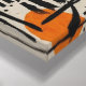 Este trabalho de arte representa uma paisagem desértica com cactos altos e pretos colocados contra um fundo vibrante e abstrato de lavagens a quente de cor laranja e legal azul. Os cactos são ilustrados no estilo do linocut, com linhas ousadas, escuras e textura detalhada, contrastando com as cores mais suaves e fluidas do céu. Os padrões circulares, tipo ondulação, no fundo sugerem um sol ou efeito de onda de calor, acrescentando ao cenário uma sensação intensa de calor e secura. Árvores deliciosas, sem folhas e terrenos desérticos rasgados completam a paisagem árida e esparsa.