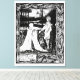 Um desenho de caneta e tinta de Aubrey Beardsley no livro Morte D’Arthur, publicado em 1893, retratando a versão de Malory da história do Rei Arthur, na qual Morgan le Fey, irmã mau de Arthur, tenta matar Arthur enviando-lhe uma manta encantada que irá queimar e matar quem a vestir. Felizmente, Arthur é avisado disso pela Senhora do Lago. O Rei diz ao mensageiro que ele só pegará o manto depois que o mensageiro o vestir primeiro. Quando o mensageiro veste o manto, ela é queimada em cinzas.