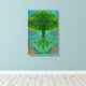Árvore da vida com asas de anjo por Amelia Carrie em cor verde e azul.