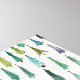 Esta design mostra trabalho de arte mostrando lindas árvores verdes de Natal. A arte original foi feita com tinta de caneta e aquarela. Muitas árvores de Natal diferentes são apresentadas decoradas com bolhas, e elas são coloridas em vários tons de verde, roxo e azul. Todas as árvores têm uma estrela brilhante no topo, como é tradicional. A design é uma celebração elegante das festividades de Natal.