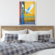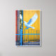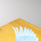Uma pomba branca radiante estende as asas contra um fundo ousado amarelo e azul, simbolizando paz, esperança e novos começos. O contraste marcante das cores realça a pureza da pomba, criando uma poderosa mensagem visual de harmonia que se eleva acima do ambiente cotidiano.