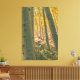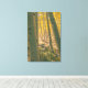 A imagem captura uma cena serena de floresta dominada por árvores altas e escaneadas. Seu latido branco suave contrasta lindamente com a vibrante folhagem amarela, criando uma atmosfera quente e convidativa. A luz solar se filtra pelas folhas, lançando sombras aplaudidas no chão da floresta. Traços caídos e uma sugestão de um caminho adicionam um senso de profundidade e tranquilidade à composição.