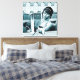 Renderização digital em 3D de uma bela jovem vintage sentada num carro no fundo de uma cidade de verão, coloração azul