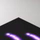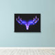 Uma imagem fractal neonatal, roxa e azul parecida com a cabeça de um animal aninhado sobre um fundo escuro.