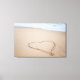 Uma cena de praia doce com uma mensagem escrita na areia. Fotógrafo: Laura Marshall