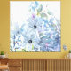 As flores azuis deliciosas e as folhagens folhosas enchem o centro da composição, com sutis pingos de bagas cor-de-rosa espalhadas por toda a parte. A estética geral é suavemente misturada, criando uma experiência visual serena e elegante.