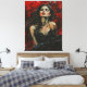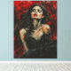 Esta trabalho de arte é uma celebração da beleza, graça e elegância eterno. Os olhos fechados sugerem um momento de introspecção ou contemplação silenciosa, convidando os espectadores a apreciar a radiação interior da senhora. A combinação de elementos - as características da senhora, o fundo vermelho e o fio de cabelo preto - se converte em uma sinfonia visual, fazer essa canvas como uma adição marcante a qualquer espaço.