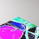 Um design de abstrato de frutas e folhas em cores vibrantes.