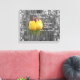 Bíblia Verse e Tulips Canvas Imprime. O campo de tulipas preto e branco com um centro de tulipas coloridas focais (tulipas amarelas) enquadra este verso/escritura bíblia inspiradora "Deus não nos deu o espírito do medo, mas do poder, do amor e de uma mente sã"...com sotaques luminosos nos bordos.