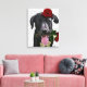 Impressão Em Tela Black Labrador com Rosas