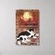 Impressão Em Tela Black White Cat Lying front of Fireplace