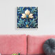 A square tile with a symmetrical floral design in shades of blue, white, and gold, ornate details, intricate patterns, elegant, royal blue background.