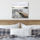 Uma tela impressa com uma foto de um cais em um lago mais rápido congelado em Oklahoma.