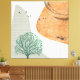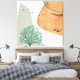 Boho design com cores verdes, laranja e hortelã, texturas e aves únicas