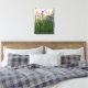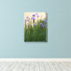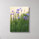 Decorar um espaço de parede com esta impressão de canvas que apresenta uma imagem fotográfica de bonito, azuis Irises e sua luxuosa folhagem verde crescendo contra uma parede de stucco clara atrás deles. Uma bela imagem floral! Personalize seu tamanho de canvas conforme desejado, juntamente com as opções de quadro.