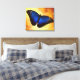 Bela borboleta azul morfo sobre fundo de bokeh.