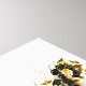 Borboleta de flores Dourada com orquídea de joias pretas, decorada com folhas de ouro sobre fundo branco.