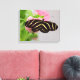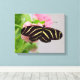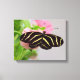 Bela borboleta que anseia por zebra senta-se em flor mutada.