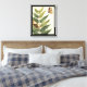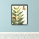 As borboletas fluem pelo ar, pousando em folhas nesta cena botânica por Megan Meagher. Um quadro preto contém a ação. Coloque esta pintura pacífica na sua parede hoje!