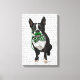 Impressão Em Tela Boston Terrier com bigode verde e gravata picada