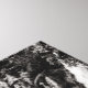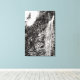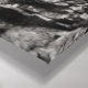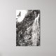 Uma fotografia a preto e branco de uma cascata numa parede de pedra, com árvores na linha da serra, e o sol brilhando na crista da cena da paisagem. Imagem Copyright ©2019 Kimberly J Tilley. www.zazzle.com/developingnature