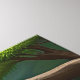 Uma estátua Tranquil Bodha sentada ao lado de uma cachoeira que flui.