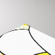 Uma grande abelha amarela e preta com um padrão de abelha com algumas flores, corações, espirais, fios e trilhas de abelhas.