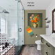Buquê floral, verde-sábio com tela laranja é a excelente maneira de adicionar um toque de cor e design ao seu banheiro. Misturar arte contemporânea com desenhos abstratos trará vida e personalidade ao seu espaço de banheiro. A arte da parede vai coordenar-se bem com o resto da decoração no seu banheiro.