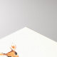 Uma tela impressa com um belo pomo marrom com pontos brancos no pelo. Um pássaro giro sentado nas costas do veado. Um elegante arranjo floral composto por rosas de aquarela e folhas verdes claras sob seus pés. Um fundo colorido de pêssego