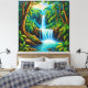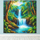 A cachoeira serena em meio a uma selva vibrante cercada por plantas tropicais, mostrando beleza natural e tranquilidade.