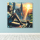 Impressão Em Tela Café Bebendo feminino em Sunrise na cidade