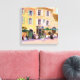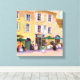 Linda tela impressa de uma cidade francesa com pessoas jantando em um café ao ar livre. Trabalho de arte por REIFSNYDER