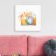 Impressão Em Tela Câmera Laranja Boho e Buquê Floral Aquarela