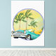 Carro clássico no logotipo do automóvel de transporte estilo retrorreflector do crepúsculo.