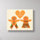 Esta incrível tela de desenho apresenta uma imagem gráfica de um casal de pão de gengibre bonito. O homem do pão tem botões verdes e vermelhos e calças verdes e vermelhas. A dama de pão de gengibre tem pestanas bonito e veste batom vermelho. Ela tem uma saia verde e vermelha e uma ponta à frente. Ambos têm um grande sorriso. Há um coração de pão de gengibre sobre o casal mostrando seu amor um pelo outro. Há o dentro branco que diz "feito um para o outro". Isso daria um presente encantador para um casal no Natal.